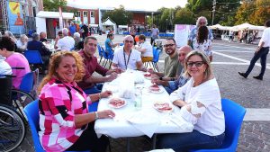 Il gruppo è partito alle 16.30 con una passeggiata tra le giostre del luna park e le bancarelle del mercatino. Alle 18.15 l’appuntamento è proseguito presso lo stand gastronomico dell’Associazione Polisportiva Gioco e Vita di Argenta, che ha offerto la cena in un clima di allegria. Piazza Marconi, adiacente al Centro Culturale “Il Mercato”, è diventata così teatro di sorrisi, battute e momenti di autentica condivisione, favorita da un cielo sereno e da una piacevole temperatura serale.
