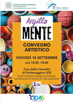 Presso la Casa della Comunità di Portomaggiore e Ostellato si è svolto "Argilla-Mente - Convegno Artistico" organizzato dal Centro Disturbi Cognitivi e Demenze di Portomaggiore (Azienda USL di Ferrara) in collaborazione con Asp Eppi-Manica-Salvatori e CIDAS Cooperativa Sociale, in occasione della Giornata mondiale dell’Alzheimer, ed inserito nell’ambito delle rassegne previste nella programmazione del CIDAS Silver Festival.